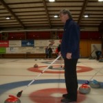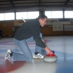 Bruno Grossmann, unser Skip, hat aber eine Riesengeduld mit uns. Er zuckt nicht mit der Wimper, wenn er mich auf dem Eis liegen sieht nach einem verunglückten Versuch der Steinabgabe. Dafür wischen wir wie die Weltmeister, wenn der entsprechende Befehl ergeht. Sogar wenn auf der Nachbarbahn der Ruf “Wüsche, feeeescht” erschallt, wische ich manchmal, bis ich merke, dass nicht ich gemeint bin. Dabei sieht alles so einfach aus am Fernsehen.