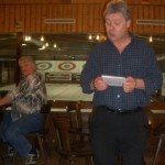 Wir sitzen gemütlich zusammen und lassen uns den Salat und die Spaghetti mit Zutaten schmecken. Der Aufruf am Vortag, noch ein paar fehlende Preise zu organisieren, hat Früchte getragen. Der Gabentisch ist reich gedeckt. Diesmal hat Skip Würgler mit seiner Mannschaft den Sieg errungen; wir sind auf dem achten, äh, letzten Platz gelandet. Aber es gibt ja nächstes Jahr ein neuntes Mal Curling für uns, da können wir uns revanchieren.
