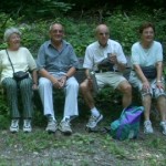 Die Sihltalbahn bringt uns nach Adliswil, wo der Wanderung erster Teil beginnt, nämlich zum Restaurant Etzliberg. “Recht viel im Schatten“ hat Kari auf der Einladung geschrieben – vielen Dank bei dieser Hitze, andernfalls kämen wir unter den heutigen Umständen alle schwarzgebraten an. Schon nach einer knappen halben Stunde findet im relativ kühlen Wald ein Trinkhalt statt.