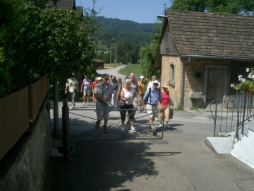 Beim ersten Bergpreis ist das Feld noch kompakt, beim zweiten ist es schon recht in die Länge gezogen. Einige von uns kommen ganz schön ins Keuchen. Nein, im Ernst, die Wanderung ist leicht, der Bergpreis mehr symbolisch.