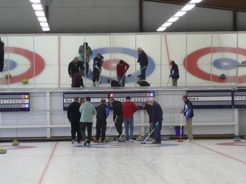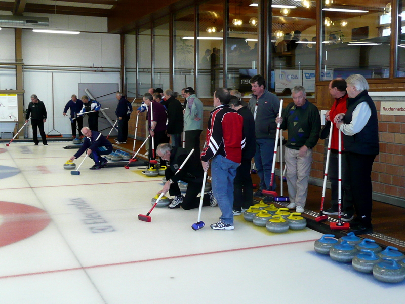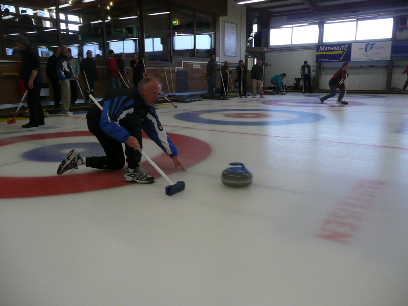 Nach 2 Runden zu je 4 Ends konnte unser Turnierleiter Paul Keller das erfreuliche Fazit ziehen, dass unter der Anleitung einiger erfahrener Skips ganz anständig Curling gespielt wurde, in meistens ausgeglichenen Partien, wobei natürlich auf diesem Niveau das Glück ab und zu ganz gehörig in Anspruch genommen wurde. Da war es auch keine Seltenheit, dass mit einem letzten Stein das Endergebnis auf den Kopf gestellt wurde und ein „sicherer“ Sieger zum Verlierer wurde!