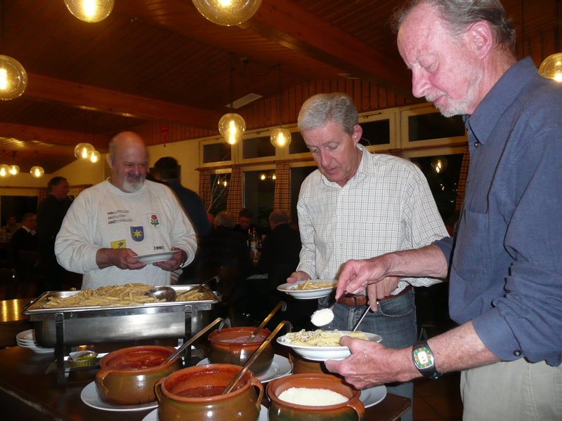 Anschliessend an die knapp 2 Stunden Spielzeit erwartete uns das ebenfalls traditionelle Pasta-Essen mit verschiedenen leckeren Saucen und knackigem Salat, heruntergespült mit einem anständigen spanischen Rotwein. Und obwohl die Platzierung bei diesem Plauschturnier absolut nebensächlich ist, gab es zwischendurch, mit Elan von Paul gemanagt, die Rangverkündung – es musste doch der übervolle Gabentisch abgeräumt werden! Und seien wir ehrlich, die im vorderen Feld Platzierten waren mit sich und der Mannschaft stolz und zufrieden, in einer doch so schwierigen Sportart (Technik, Kondition und taktisches Gespür) so weit vorne zu landen!