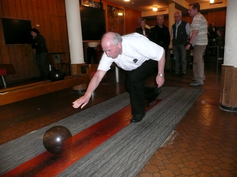 Türe auf, und schon rollt die erste Kugel. Alle möchten noch so viele Probeschüsse wie möglich abgeben, denn kaum jemand hat seit dem letzten Mal eine Kugel geschoben. Perfekte wie auch verbesserungswürdige Einlagen wechseln sich ab. Bald verschafft sich Tätschmeister Felix Gehör, um kurz die Spielregeln zu erklären und die Gruppenbildung durchzuführen. Und wer die Zahlen aufschreiben will, soll oder muss, ist auch bald geklärt.