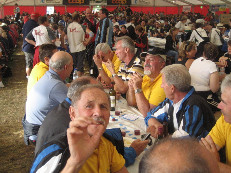 Jetzt wurde es Zeit, sich ein bisschen zu entspannen – die letzten zwei Disziplinen standen erst um 16.15 Uhr auf dem Programm. Die gut zwei Stunden wurden rege genutzt, um Körper und Seele zu erfrischen und um mit den „neuen“ Männerriegler (zum Glück hat es davon in letzter Zeit wieder einige gegeben) Bekanntschaft zu schliessen.