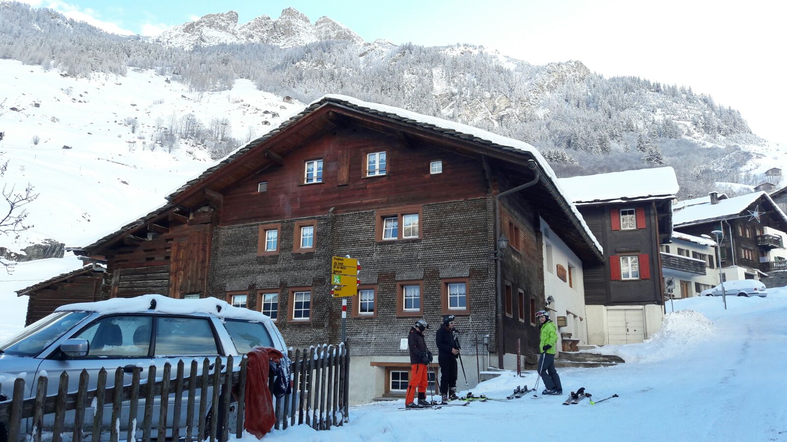 Nachdem sich eine kleine Gruppe bereits am Vortag in Vals zum Jassen eingefunden hatte, verabredete sich der Rest der Teilnehmer für die Anreise auf 06:37 Uhr. Für alle ausser mir war klar, dass sich diese Abfahrtzeit auf Zürich und nicht auf Wallisellen bezog. Also bin ich dann eine Stunde später nachgereist. Ein Unglück kommt bekanntlich selten allein. Beim Umsteigen in Illanz vergass ich mein Gepäck im Zug, welches ohne mich nach Disentis weiter reiste.
