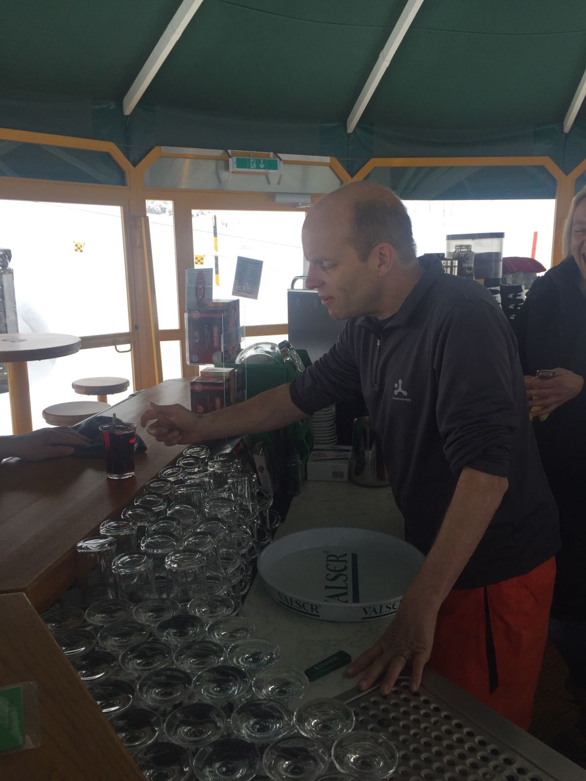 Das schlechte Wetter zieht uns früher als gewohnt in die ScHirmbar zu Maria und Sonja, welche uns wie letztes Jahr auch heute wieder mit allerlei Drinks versorgen. Chipo unterstützt die beiden Bardamen tatkräftig beim Zubereiten der Getränke. Die Partymusik im Hintergrund heizt die Stimmung zusätzlich an. Phüdli ruft „Musig lüüter“ was von Chipo als „Kaffi Chrüüter“ verstanden wird. Gesagt getan, schon steht ein dampfender Kräuterluz auf dem Tresen. Wer trinkt schon Kräuterluz?